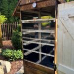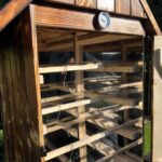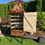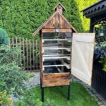 Wędzarnia posiada dach dwuspadowy (JEST TO NAJLEPSZY MOŻLIWY RODZAJ DACHU UŻYWANY DO WĘDZENIA), który jest wkładany do komory wędzarniczej – dzięki temu dach nie spadnie i nie przesuwa się – JEST BARDZIEJ SZCZELNY. Na dachu jest umieszczony kominek z regulacją przepływu dymu.